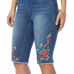 Best Pirce ๐ DG2 By Diane Gilman Virtual Stretch Pull-On Embroidered Bermuda Short White ๐คฉ