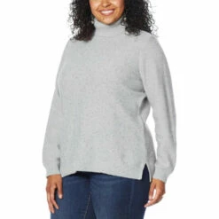 Wholesale ๐ “As Is” DG2 By Diane Gilman Chenille Split-Front Turtleneck Sweater ๐