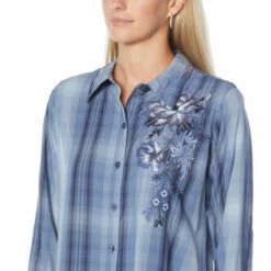 Flash Sale โจ DG2 By Diane Gilman Embroidered Plaid Buttoned ๐ Shirt Navy Plaid ๐