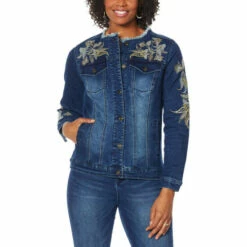 New 😍 DG2 By Diane Gilman Embroidered Classic Stretch Denim Jacket 🤩