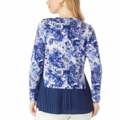 New 😀 DG2 By Diane Gilman Ribbed Knit Pleated Underlay Combo Top Scattered Floral/navy 🔥