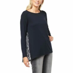 Best Pirce 🛒 DG2 By Diane Gilman Reversible Print Knit Boyfriend Tee Deep Teal Ditzy ⭐