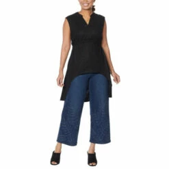Best Sale โญ DG2 By Diane Gilman Printed Jersey Knit Sharkbite Hem Tunic Black Paisley ๐ฏ