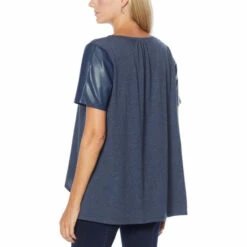 Budget ๐ DG2 By Diane Gilman Faux Leather Short-Sleeve Pocket Swing Tee Black โ
