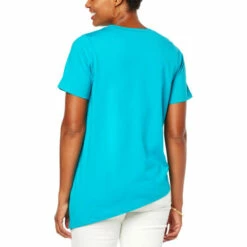 Budget ๐ DG2 By Diane Gilman Asymmetric Drape-Front Tee Teal ๐