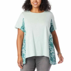 Budget โค๏ธ DG2 By Diane Gilman Slub Jersey Knit Printed Panel Short-Sleeve Top Peach โ