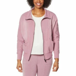 Cheapest 🔥 “As Is” DG2 By Diane Gilman “DG Downtime” Knit Flex Zip-Up Track Jacket Amethyst 😍