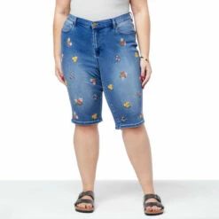 Buy ๐ DG2 By Diane Gilman Virtual Stretch Embroidered Bermuda Short Indigo ๐