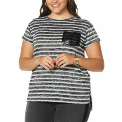 Discount ๐ฅ DG2 By Diane Gilman Sequin Pocket Striped Tee Pink โ