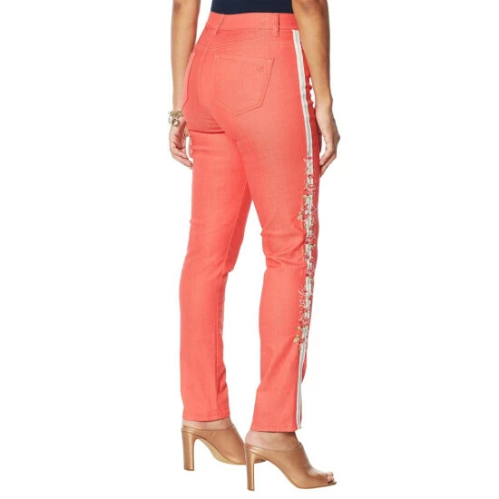 DG2 by Diane Gilman Classic Stretch Embroidered Stripe Skinny Jean