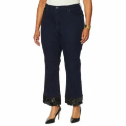 Every day is a good day to sparkle! Sequin-covered cuffsadda glamorous touchto these classic stretch,great-fitting straight-legjeans from the jean queen.
