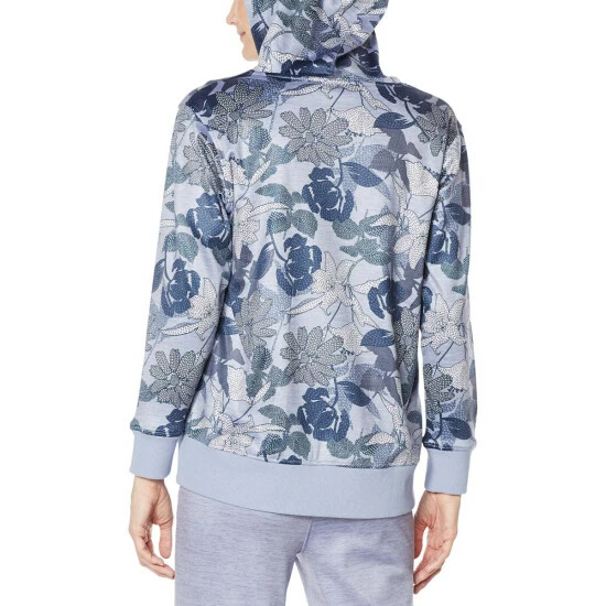 Beautiful prints define this stylish hoodie finished in rib knit trim and boasting handy front pockets.