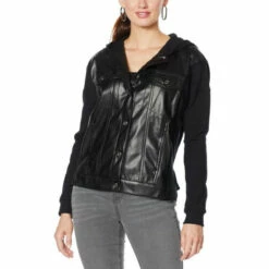 Best reviews of ๐Ÿฅฐ “As Is” DG2 By Diane Gilman Faux Leather And French Terry Jacket Black ๐Ÿงจ
