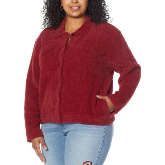 Kick off cuddle season ina jacketthat wraps you in a warm, stylish embrace with its fuzzy sweater knit fabric.