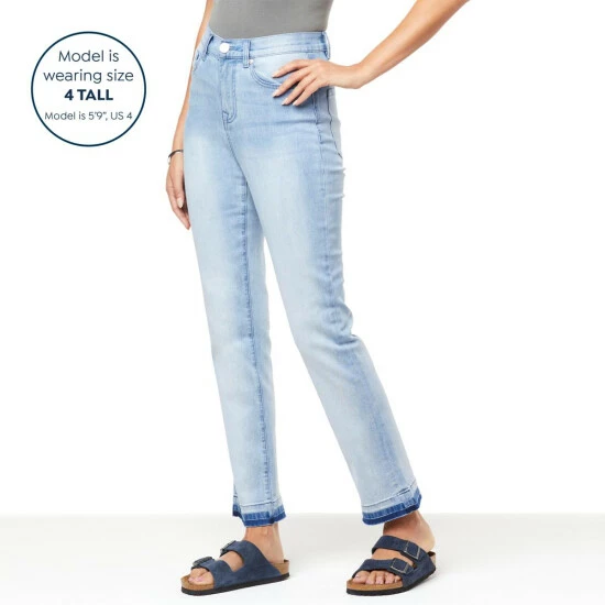 A chic shadow wash and released, frayed hem give a well-worn look to these signature straight-leg ankle jeans from Diane Gilman. With a flattering at-waist rise, they’re a seasonless staple you simply can’t live without.