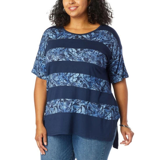DG2 by Diane Gilman Printed Panel Everyday Jersey Hi-Low Tunic Tee