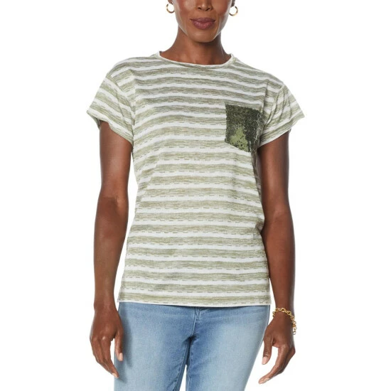 DG2 by Diane GilmanSequin Pocket Striped Tee