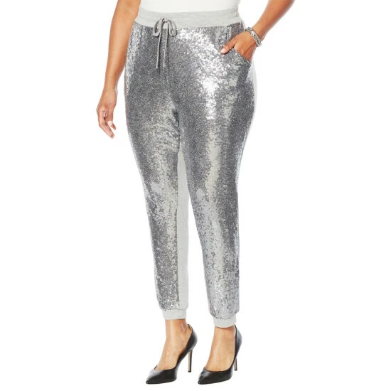 DG2 by Diane Gilman Sequined Front Pull-On Slim Jogger Pant