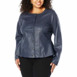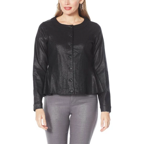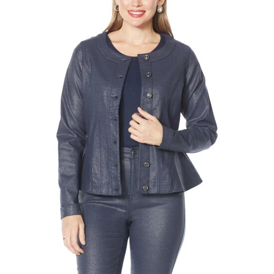 DG2 by Diane Gilman Sparkle Denim Collarless Peplum Jacket