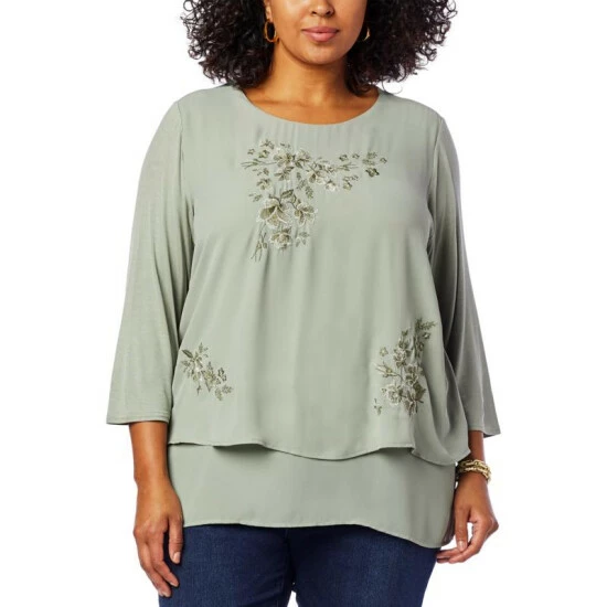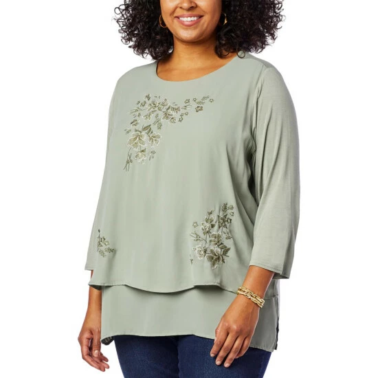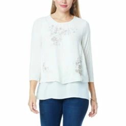 DG2 by Diane Gilman 3/4-Sleeve Embroidered Easy Top