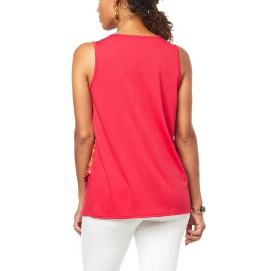DG2 by Diane Gilman Asymmetric Printed Overlay Easy Tank