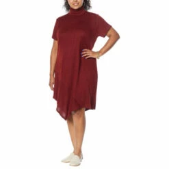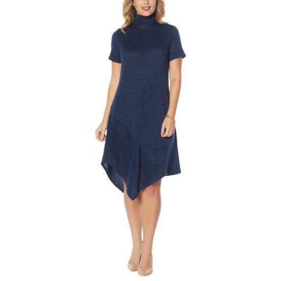 Enjoy sweater weather with a dress that’s meant to flatter and fascinate. Styled with arelaxed-fit turtleneck and chic asymmetric hem, it combines warm comfort and savvy stylefor a cooler-weather favorite.