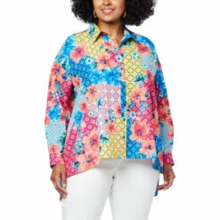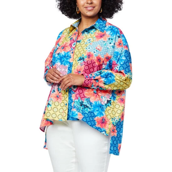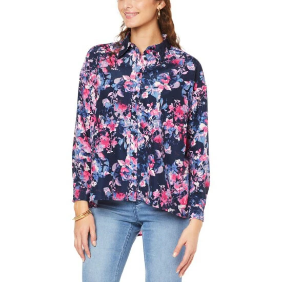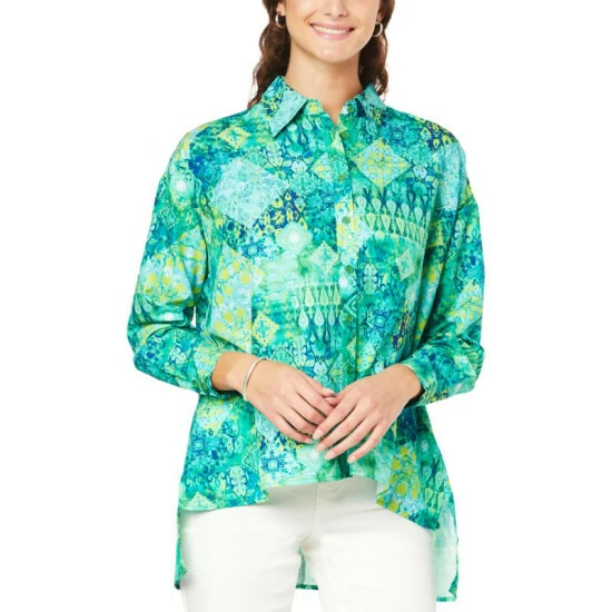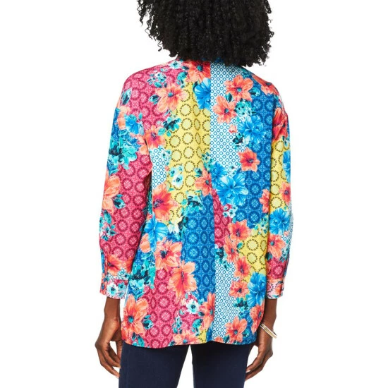 DG2 by Diane Gilman Boxy Button-Up Printed Shirt