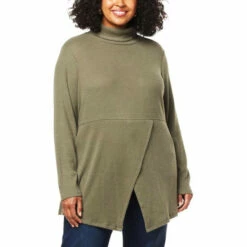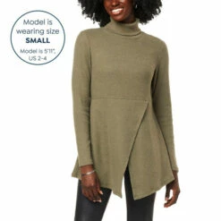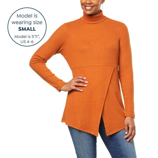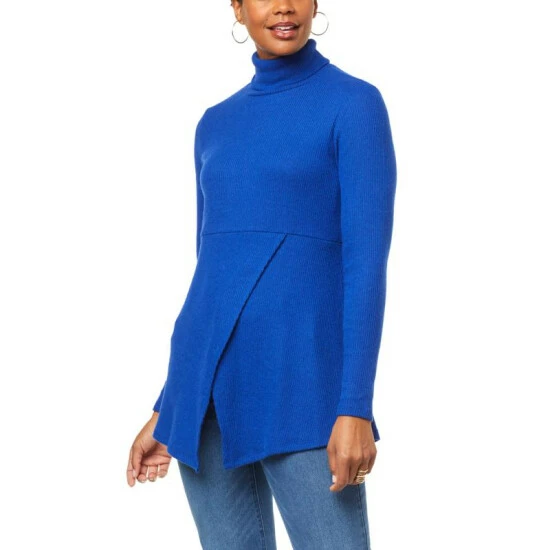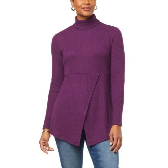 DG2 by Diane Gilman Brushed Rib Knit Cross-Front Turtleneck Top