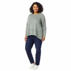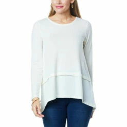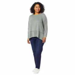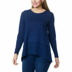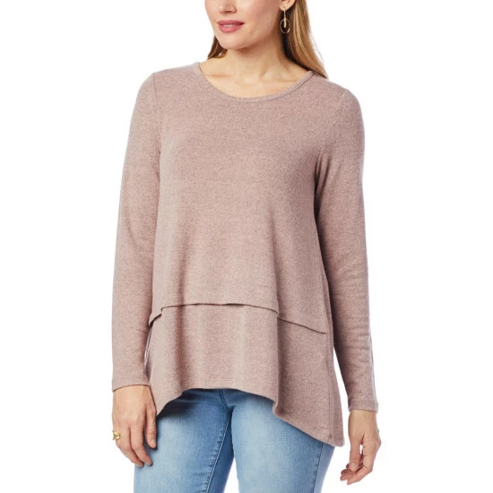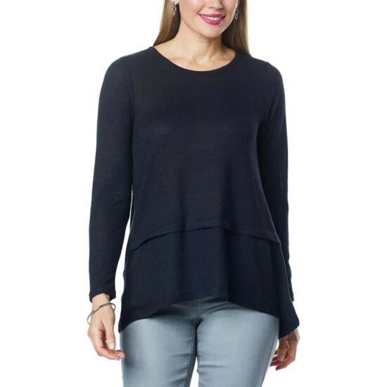 An hi-low,peplumsweepadds a flirty finish to this super soft, brushed sweater knit top from Diane Gilman. It’s a timeless, seasonless wardrobe staple.
