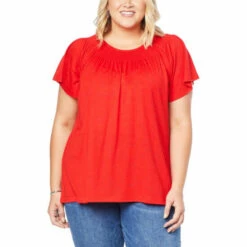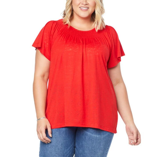 DG2 by Diane GilmanBurnout Slub Knit Smocked Neck Tee