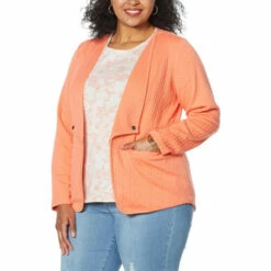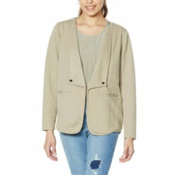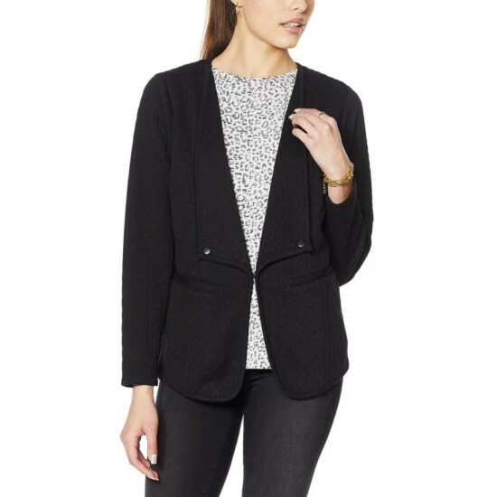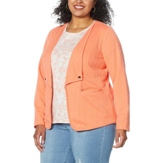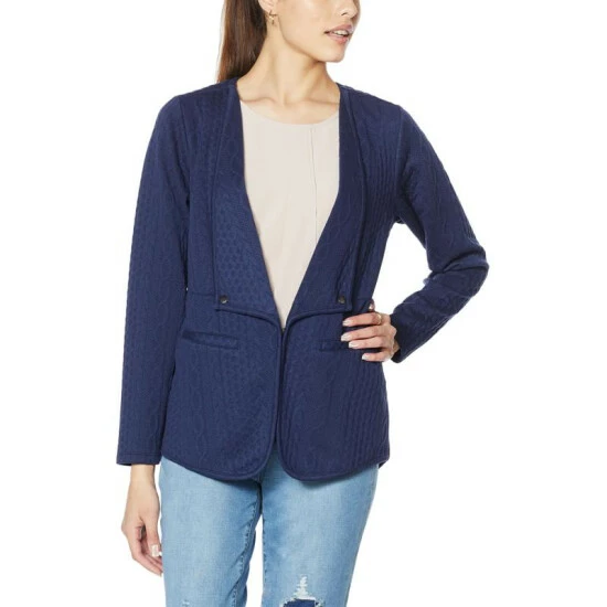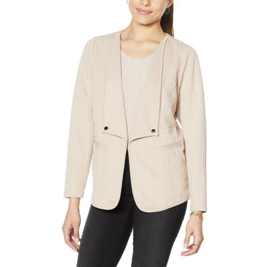 DG2 by Diane Gilman Cable Knit French Terry Knit Easy Jacket