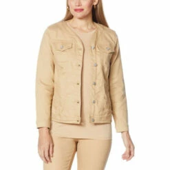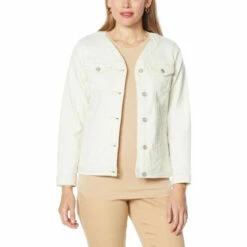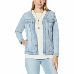 DG2 by Diane Gilman Classic Stretch Collarless Denim Jacket