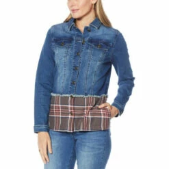 Plaid is timeless. Denim is classic. Together they are fabulous. Thisclassic denim jean jacket from Diane Gilman adds aversatile, high-style layer to your year-round wardrobe.
