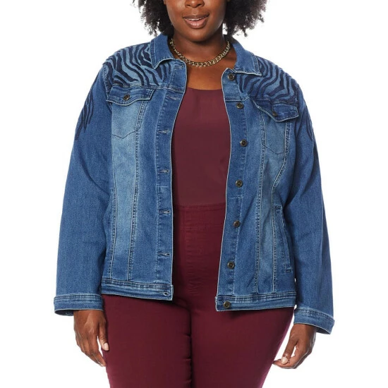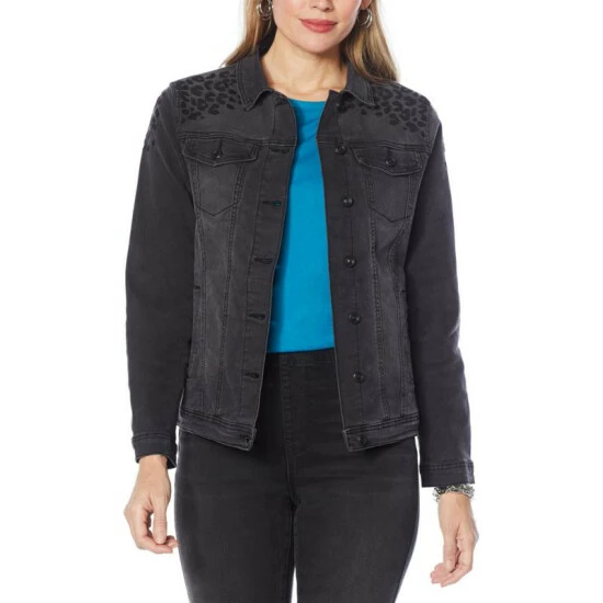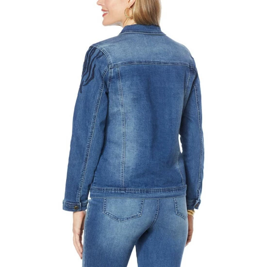 DG2 by Diane Gilman Classic Stretch Embroidered Denim Jacket