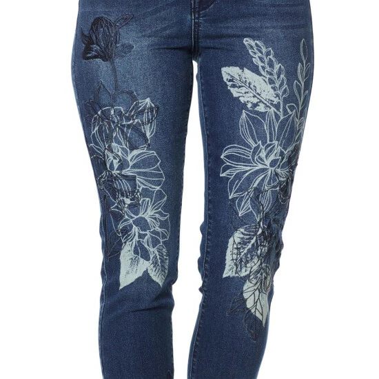 Beautiful embroidery and a raw hem come together in an eclectic jean that is sure to turn heads.