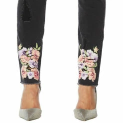 | Trim/Embellishments: | Floral embroidery at hem; destructed areas |