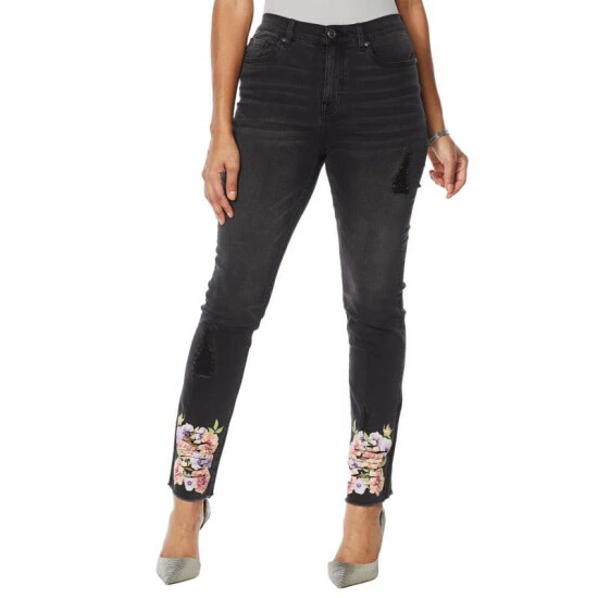 DG2 by Diane Gilman Classic Stretch Floral Fray-Hem Ankle Jean