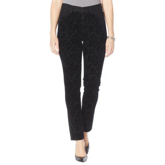 Flocked front panelsadd unexpected flair to these classic stretch, figure-flattering skinny jeans from Diane Gilman.