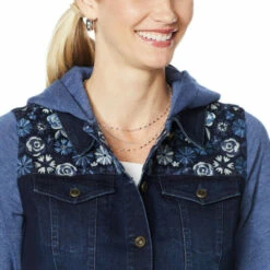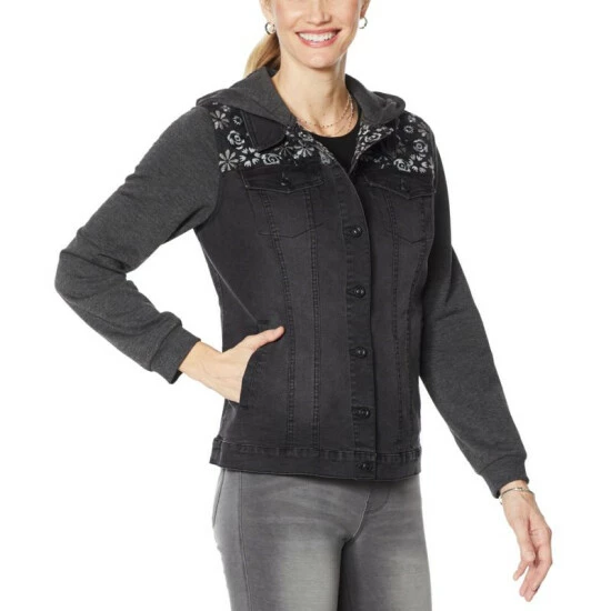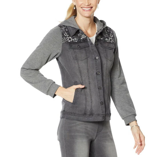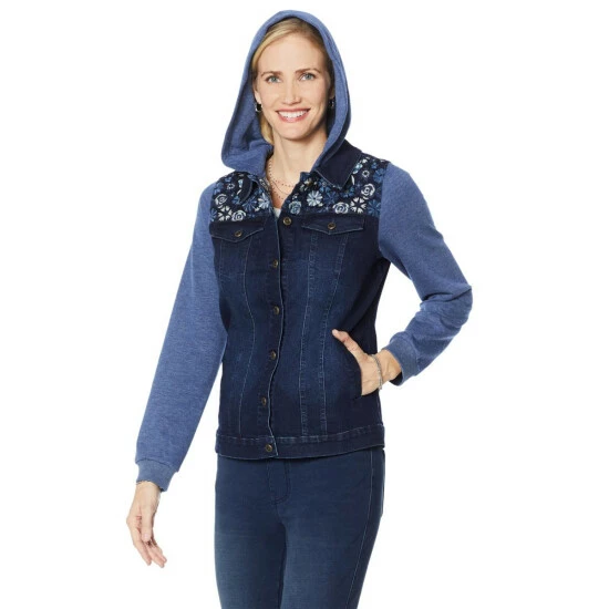 DG2 by Diane Gilman Classic Stretch Hooded Combo Denim Jacket