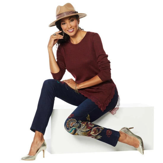 Say yes to these stretch skinny jeans – done Diane’s way. With a just-right touch of artisan embroidery and embellishments, the flattering silhouette makes these a must-have for your jeans wardrobe.