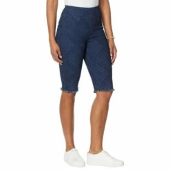 A frayed hem gives these printed Bermuda shorts a cut-off look that’s right on trend. But the best part may be the wide, stretch waistband offering all-day comfort.