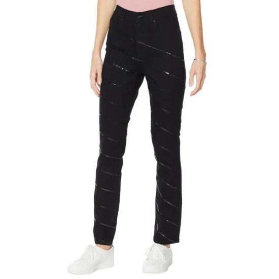 Sequin stripes jazz up sleek skinny jeans, making these your dress-up, go-out choice for creating fun, fashionable outfits.