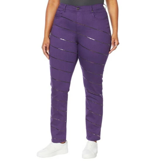 DG2 by Diane Gilman Classic Stretch Sequin Stripe Skinny Jean