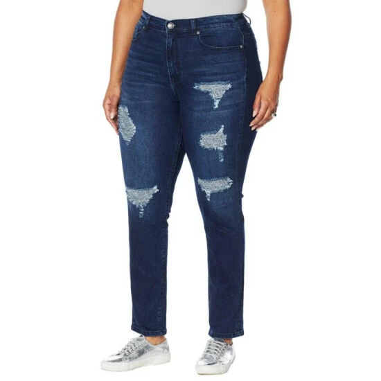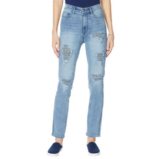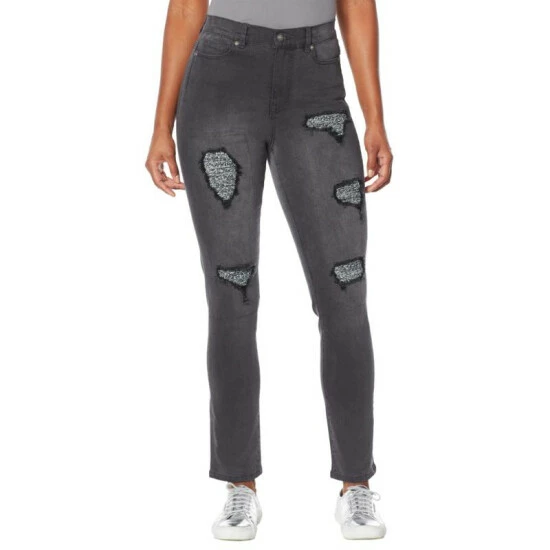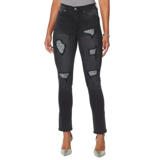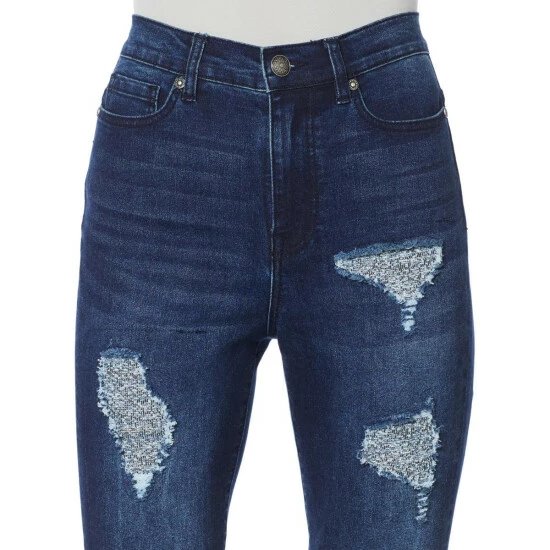 Destructed areas show glimpses of tweed, making these your fall choice for pairing with button-downs, blazers and sweaters.