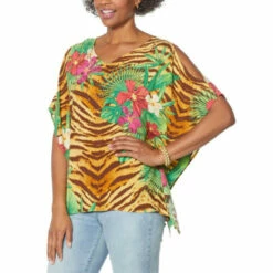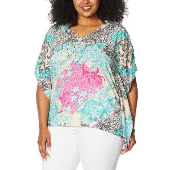 DG2 by Diane Gilman Cold-Shoulder Printed Kaftan