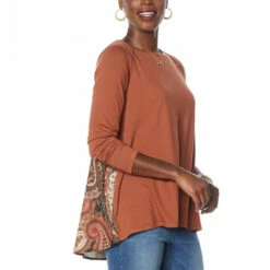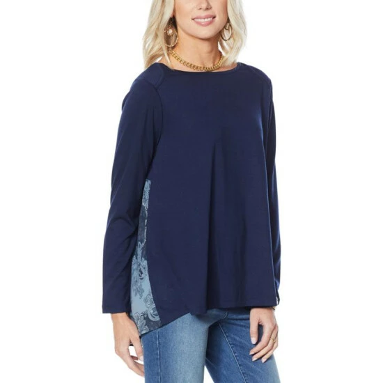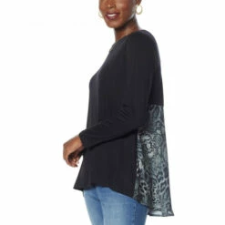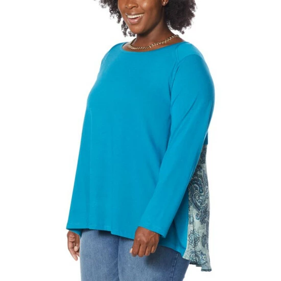 DG2 by Diane Gilman Combo Hi-Low Hem Peplum Top