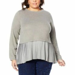DG2 by Diane Gilman Combo Pleated Peplum Top