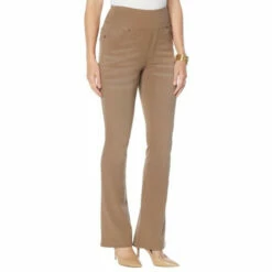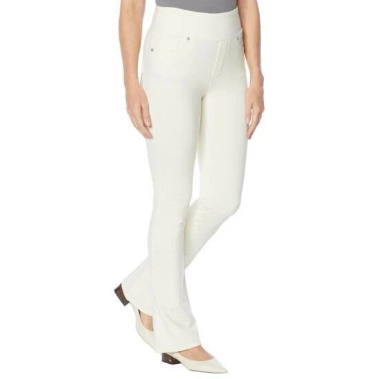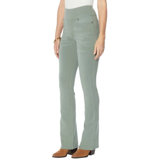 Step aside, skinnies — there’s a new jean in town. This pull-on comfort waistjean is slightly flared past the knee for a slim, boot-cutfit. Made withDiane Gilman’ssoft knit flex fabric, itfeels as soft and stretchy as a pair ofsweatpants but looks like your favorite everydaydenim.