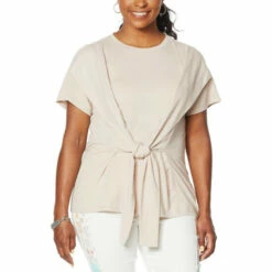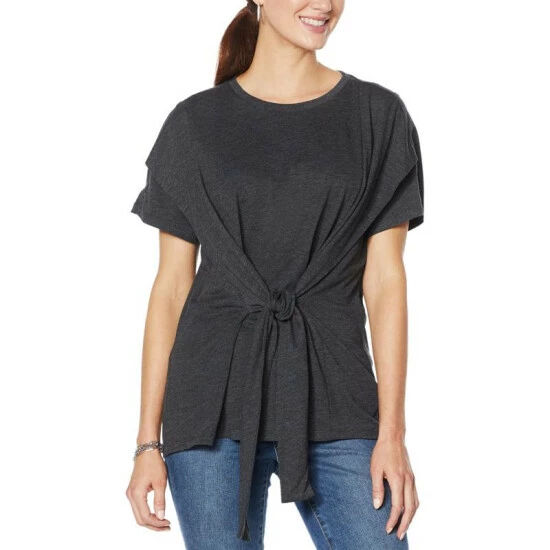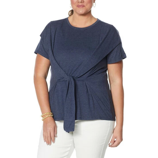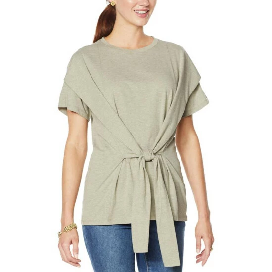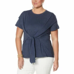 Update your basics with a top that’s as versatile as it is fashionable. Flutter-style overlay panels are set into the princess seams and extend beyond the hem so you can wear it long and draped or tied in a knot.
