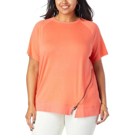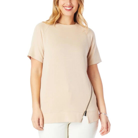 DG2 by Diane Gilman “DG Downtime” Asymmetric Zip Short-Sleeve Top